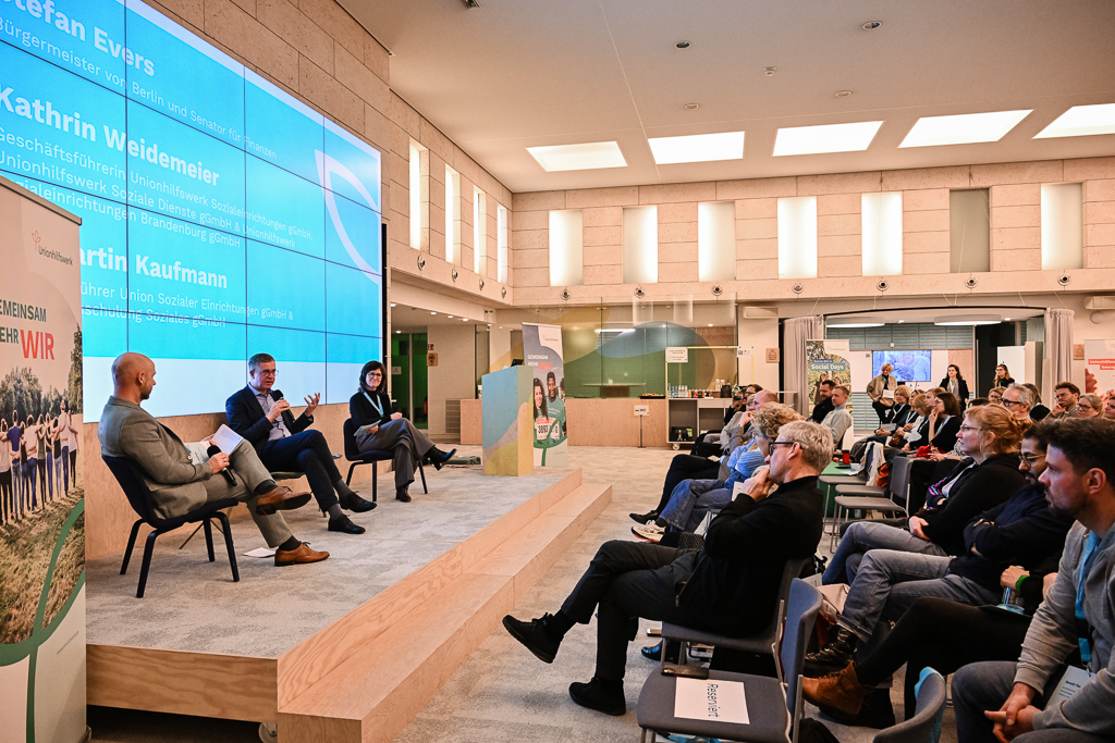 Ein besonderer Programmpunkt war der Austausch mit Stefan Evers, Bürgermeister im Senat Kai Wegner und Berliner Senator für Finanzen. In seiner Keynote zur finanzpolitischen Perspektive auf die Sozialpolitik wurde deutlich, vor welchen Herausforderungen Land und Träger stehen – wachsende Bedarfe, begrenzte Mittel, notwendige Reformen. Evers‘ Einordnung des Status Quo und der sich in den kommenden Jahren abzeichnenden Entwicklungen und Herausforderungen war ehrlich, klar und lösungsorientiert.